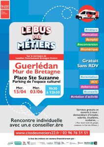 La Cité des Métiers des Côtes d’Armor délocalise ses services et vient à votre rencontre, en se déplaçant dans le département, grâce au bus des métiers. Un.e conseiller.e à la vie professionnelle vous accueille gratuitement et vous apporte des informations sur les métiers et votre projet professionnel.